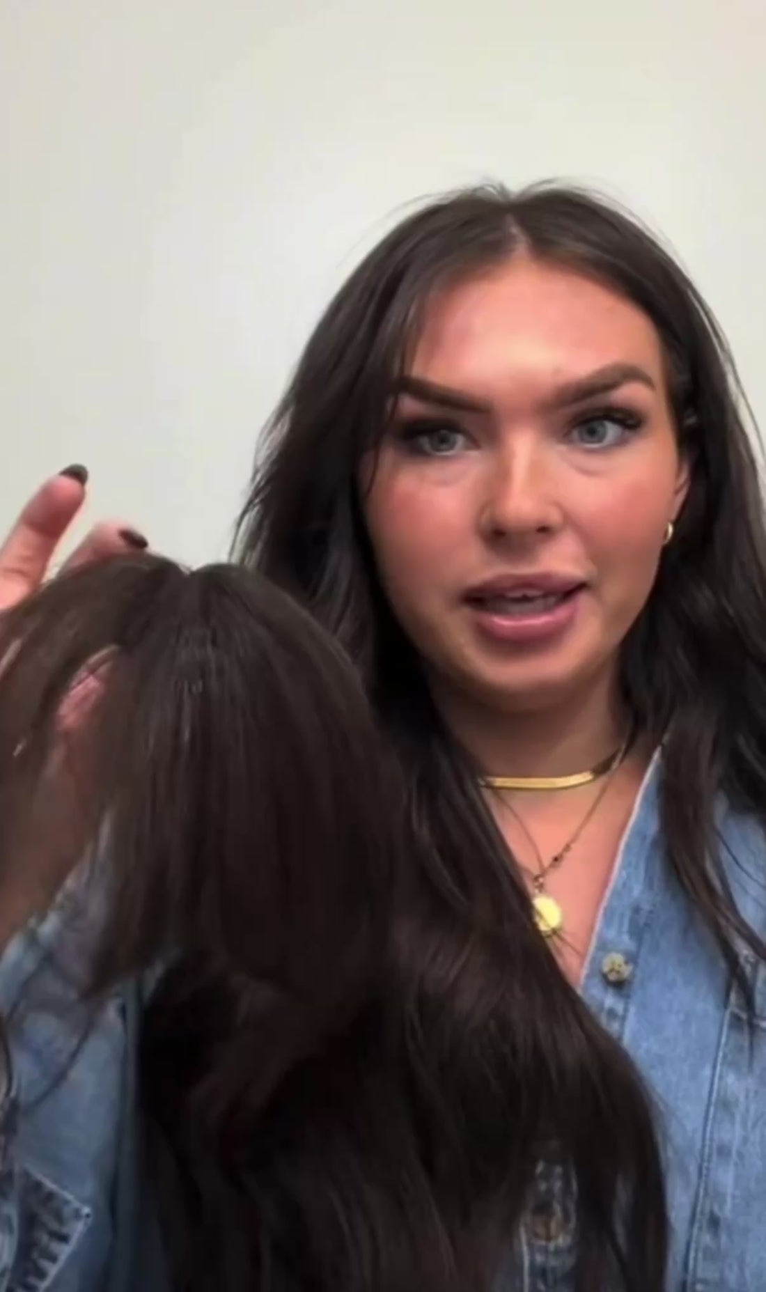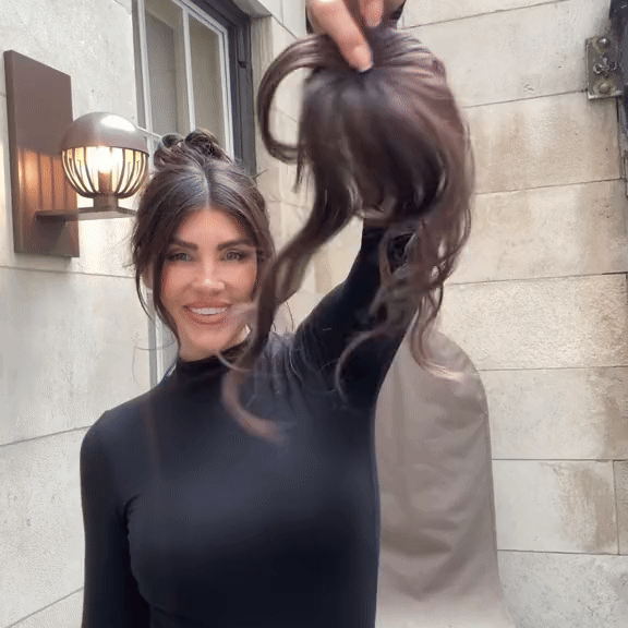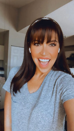 „Ich hatte bedenken, dass der Farbton nicht zu 100% passt, aber InstaBangs fügt sich perfekt in mein dunkelbraunes Haar ein! Der Übergang ist natürlich. Niemand merkt, dass es ein Clip-In ist, einfach perfekt!"